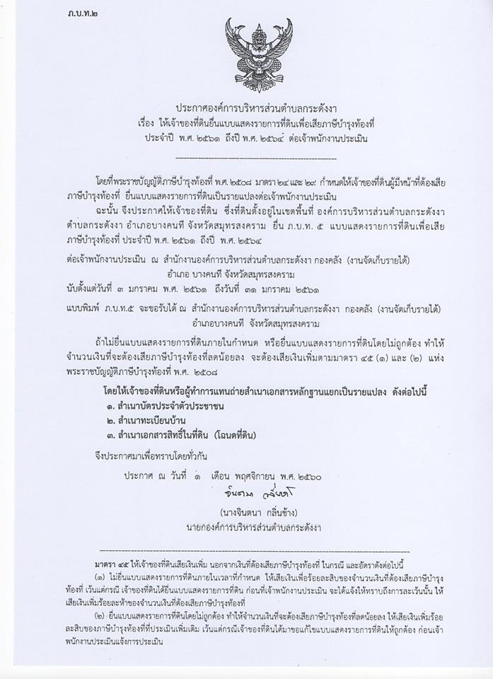 แจ้งชำระภาษีบำรุงท้องที่ ภาษีโรงเรือนและที่ดิน